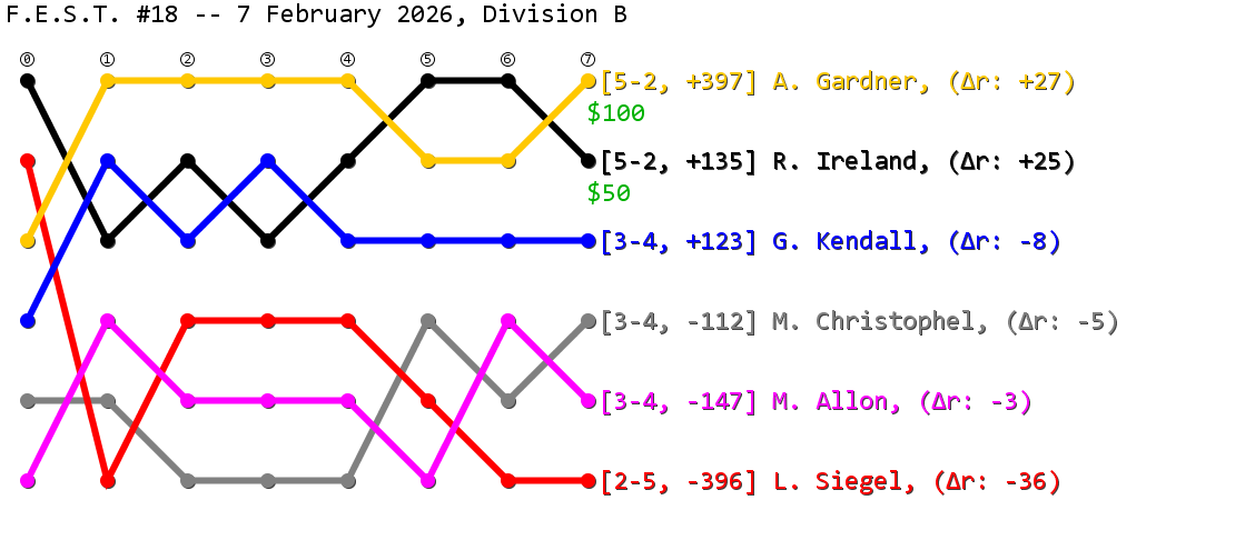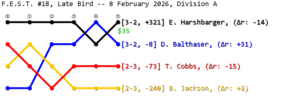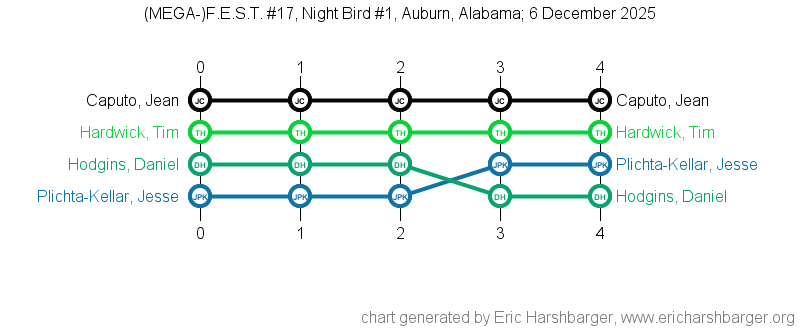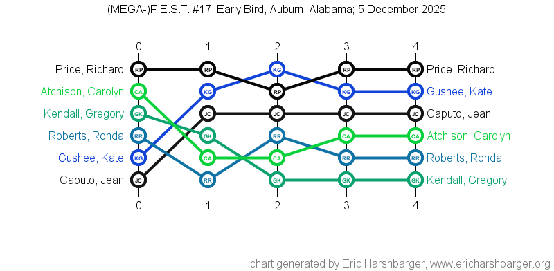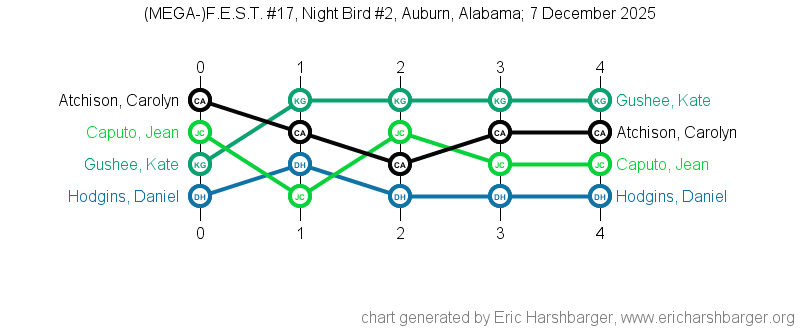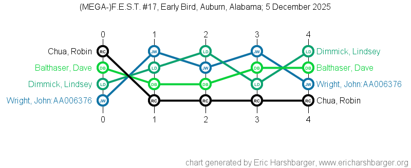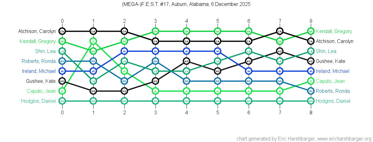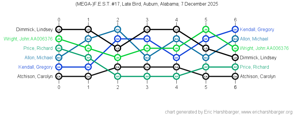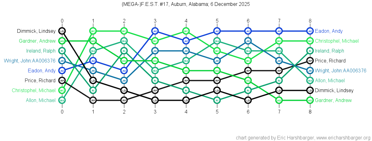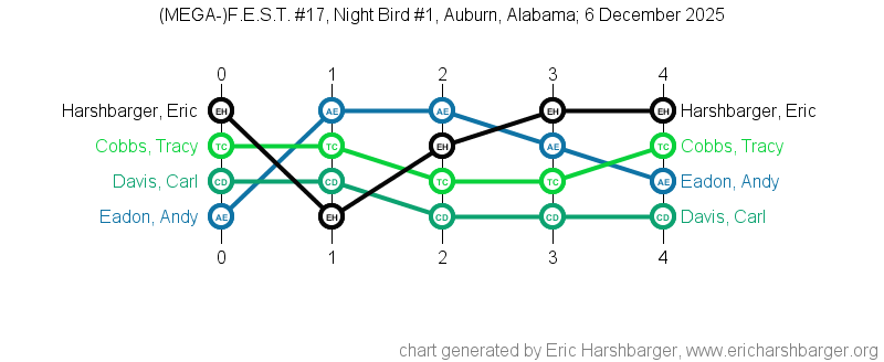 Past "Friendly East-Alabama Scrabble Tournaments" (F.E.S.T.s) that I have directed are listed below (with the most recent at the top of the list).